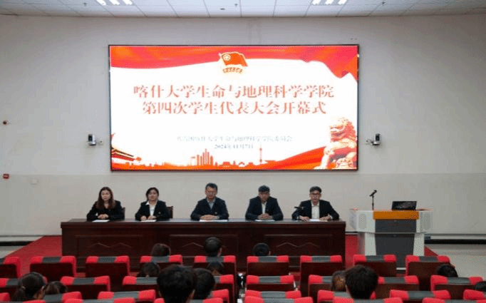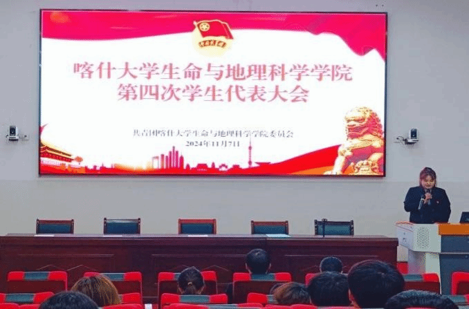 2024年11月7日,喀什大学生命与地理科学学院第四次学生代表大会在学院A102报告厅隆重召开。会议由学院党委副书记唐山老师、学院学工办主任阿布拉江·玉苏瓦吉老师、学院团委书记茹新鸽老师、学院学工办团干部布合力其姑力老师、学院团干部高安利老师以及学院55名学生代表参加。