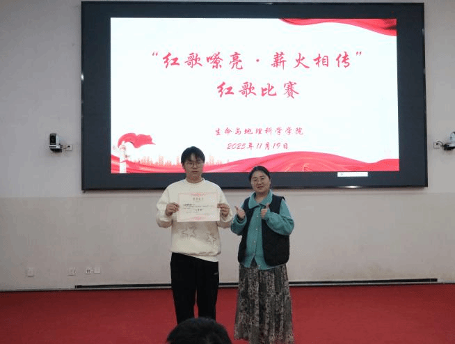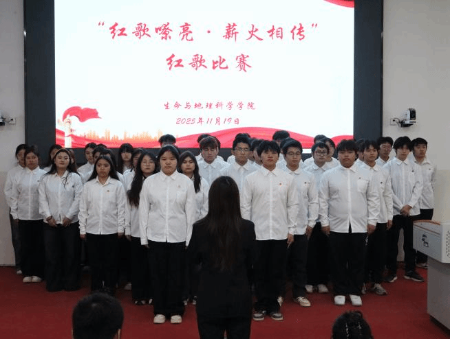 生命与地理科学学院为贯彻校党委“五个人人”工作要求,有形有感有效铸牢中华民族共同体意识,构建学生红色文化交流互鉴的良好平台,2025年11月19日学院特举办“红歌嘹亮·薪火相传”——红歌比赛活动。
