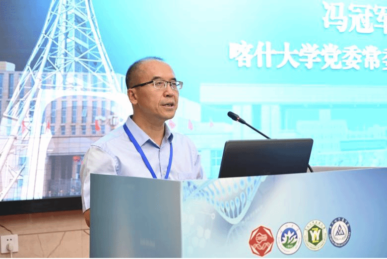 喀什大学党委常委、副校长冯冠军代表喀什大学对与会嘉宾表示热烈欢迎,介绍了喀什大学发展取得的成绩以及未来发展目标,他表示:近年来,喀什大学围绕自治区“八大产业”集群,在学科专业、科研和人才培养方面持续用力,博士授权单位资格审批公示,尤其是生命学科发展迅速,生物与医药博士点培育建设取得阶段性成效,学校已开启医学和农学类人才培养。本次会议在我校举办,赋予了特殊意义,也体现了举办方对我校的充分信任。他真诚希望与会专家学者以本次会议为契机,为我校的生物学、医学、农学等学科发展建言献策。
