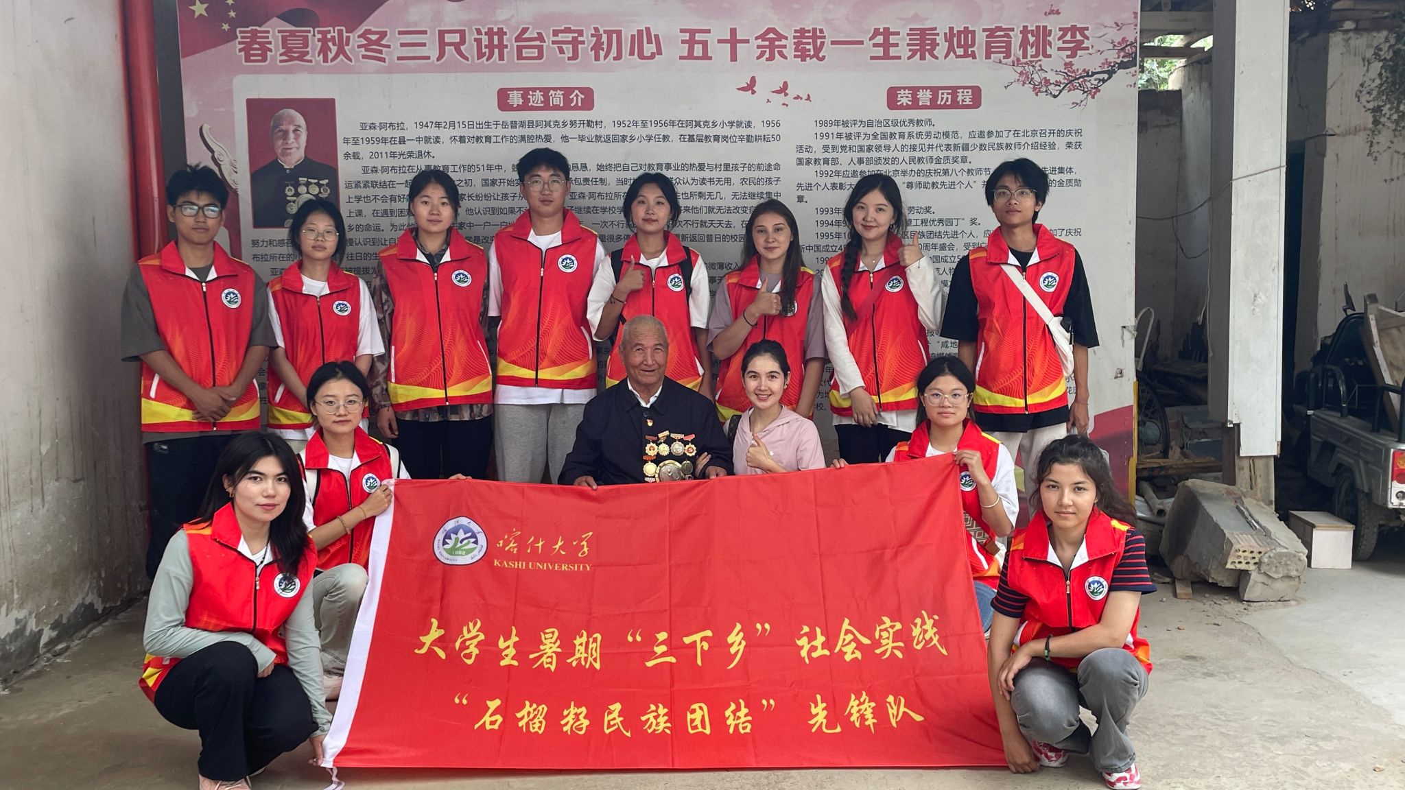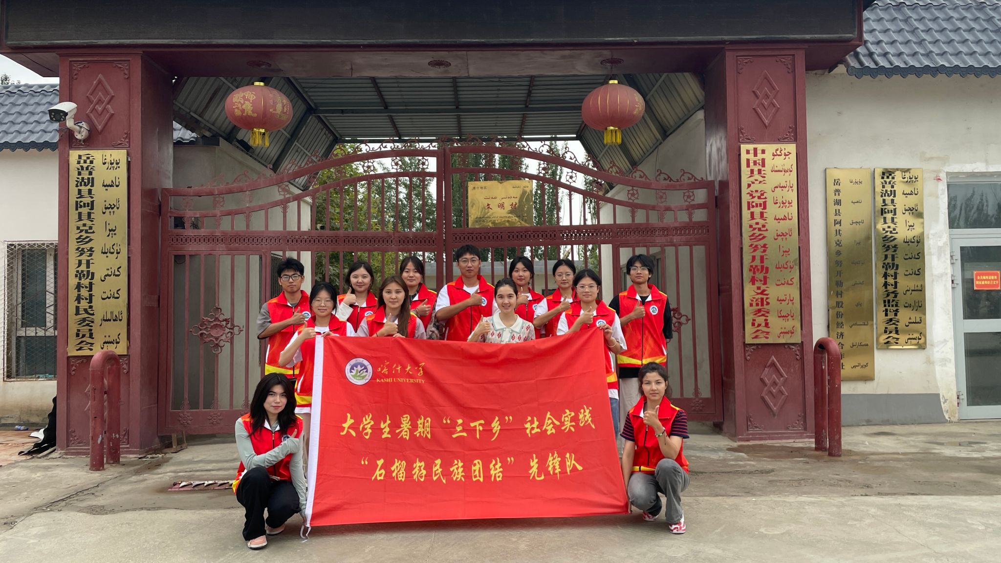 为促进各民族共同团结奋斗、共同繁荣发展贡献自己的力量,推动构建和谐稳定的社会环境,2024年9月8日,喀什大学生命与地理科学学院的“石榴籽民族团结先锋队”,在指导老师努尔自拜尔·艾尼外的精心组织下深入基层,前往岳普湖县阿其克乡开展了以“民族团结共筑梦,基层走访暖人心”为主题的社会实践活动。