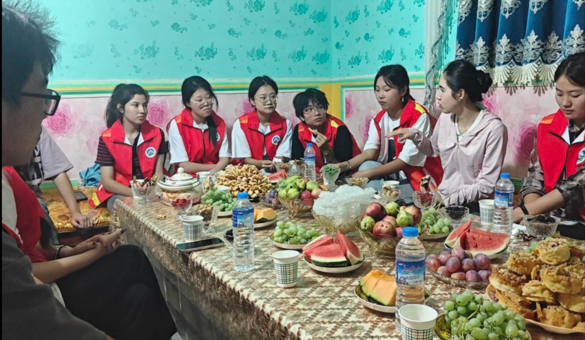 中午,先锋队成员们受邀来到当地居民家中,与村民们共进午餐。在品尝当地特色美食的同时,他们也深切感受到了这里独特的民风民俗。欢声笑语中,彼此间的距离不断拉近,民族团结的情谊也在心中悄然生根。这种亲密的交流不仅促进了各民族之间的相互了解与融合,更让大家深刻体会到了民族团结一家亲的真谛。