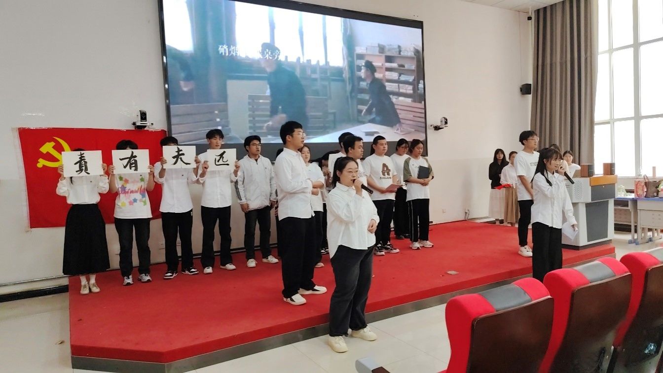 在活动的热烈氛围中,感人肺腑的红色故事、灵动优美的新疆舞、刚柔并济的太极拳、激昂慷慨的红色歌曲以及遒劲有力的毛笔字,都以其独特的魅力,吸引着观众的注意力。支部各班级通过朗诵、演讲、情景剧等多种形式相融合,以真挚的感情,以饱满的热情,展现大家学习落实“五个人人”工作的效果,进一步激发了同学们学习落实“五个人人”工作的自觉性和内生动力。