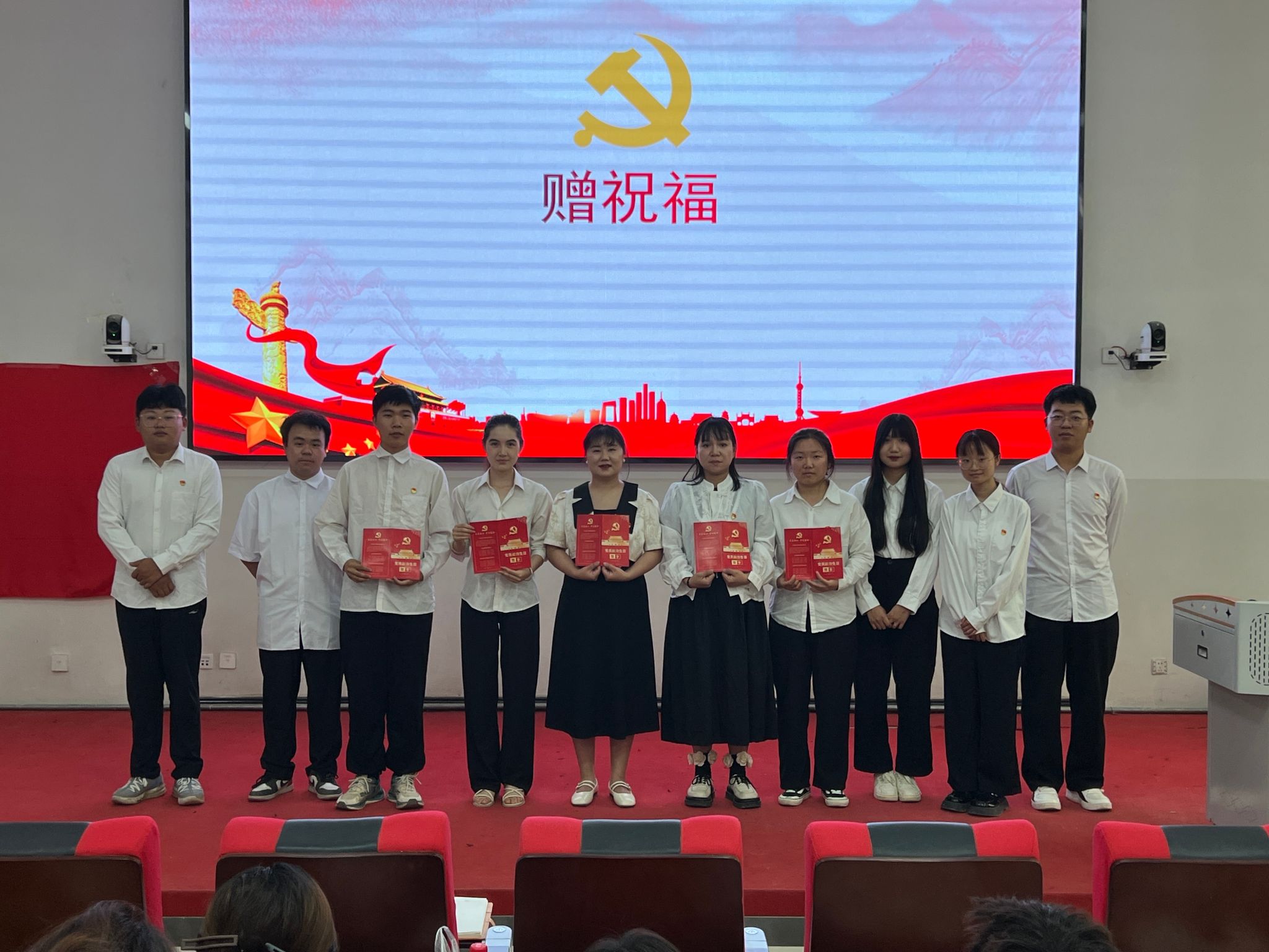 学生第五党支部在党员入党1周年之际,向2022-2024届毕业生党员发送了32份电子祝福贺卡。在活动现场,支部书记向支部在校党员赠送了“政治生日”贺卡。这些贺卡不仅承载了党支部的祝福和期望,更让党员们感受到了党组织的温暖和关怀。