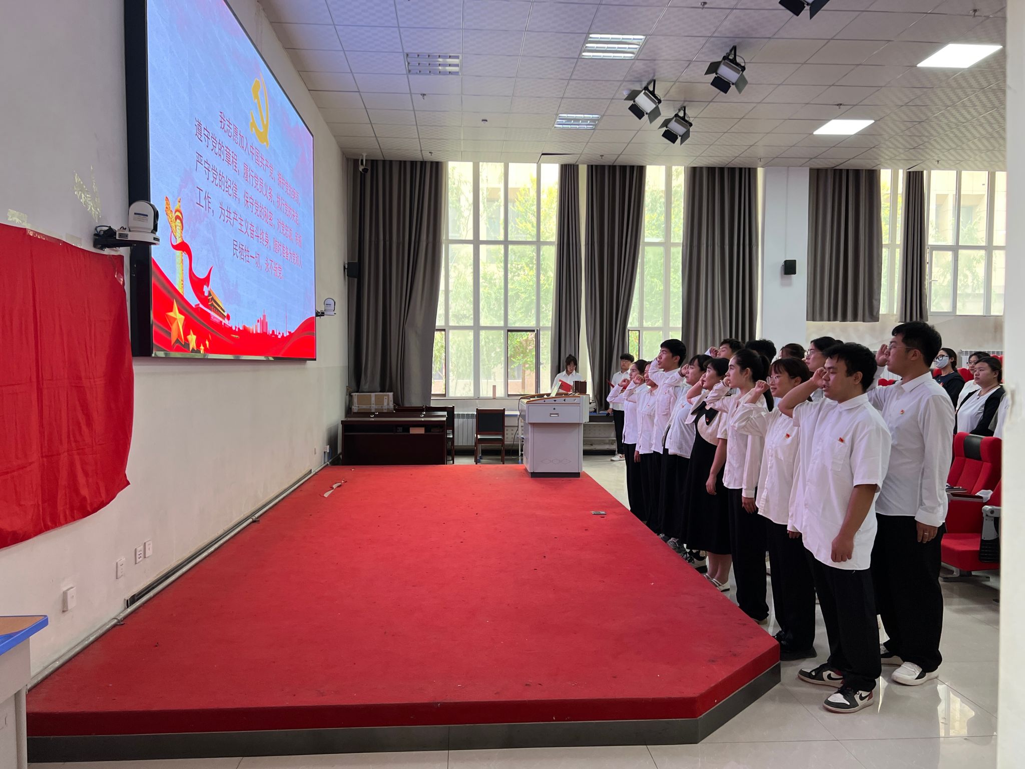党员代表上台分享入党故事与心路历程,充满了对党的深厚感情和为党工作的信心。活动聚焦“入党初心、在党作为、为党贡献”三个核心问题,引发了大家热烈讨论,进一步坚定了党员及入党积极分子的理想信念。大家高唱《没有共产党就没有新中国》,党员同志们重温入党誓词,进一步增强了对党的认识,提升了党性修养。